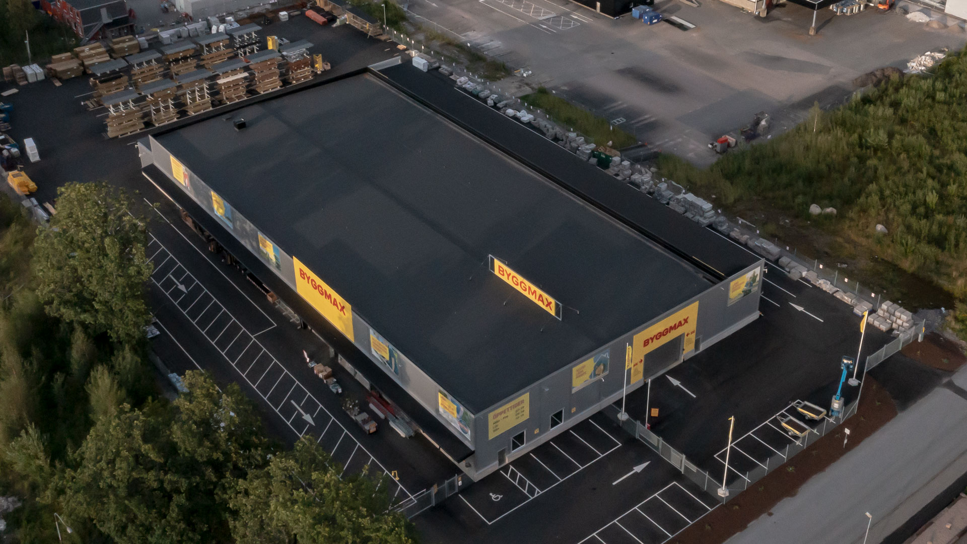 Som totalentreprenör från mark till fasad, så kunde vi lagom till sommarens altanrenoveringar och sommarstugearbeten 2021 lämna över nycklarna till Byggmax som flyttade ett stenkast inom området. Både den gamla och nya verksamheten var och är belagd på industriområdet Grafiten norr om centrala Trollhättan.