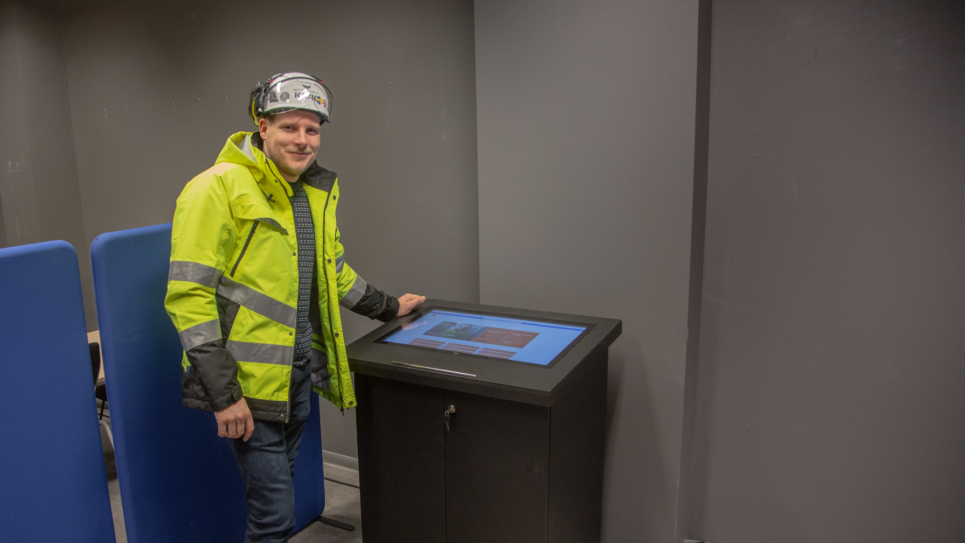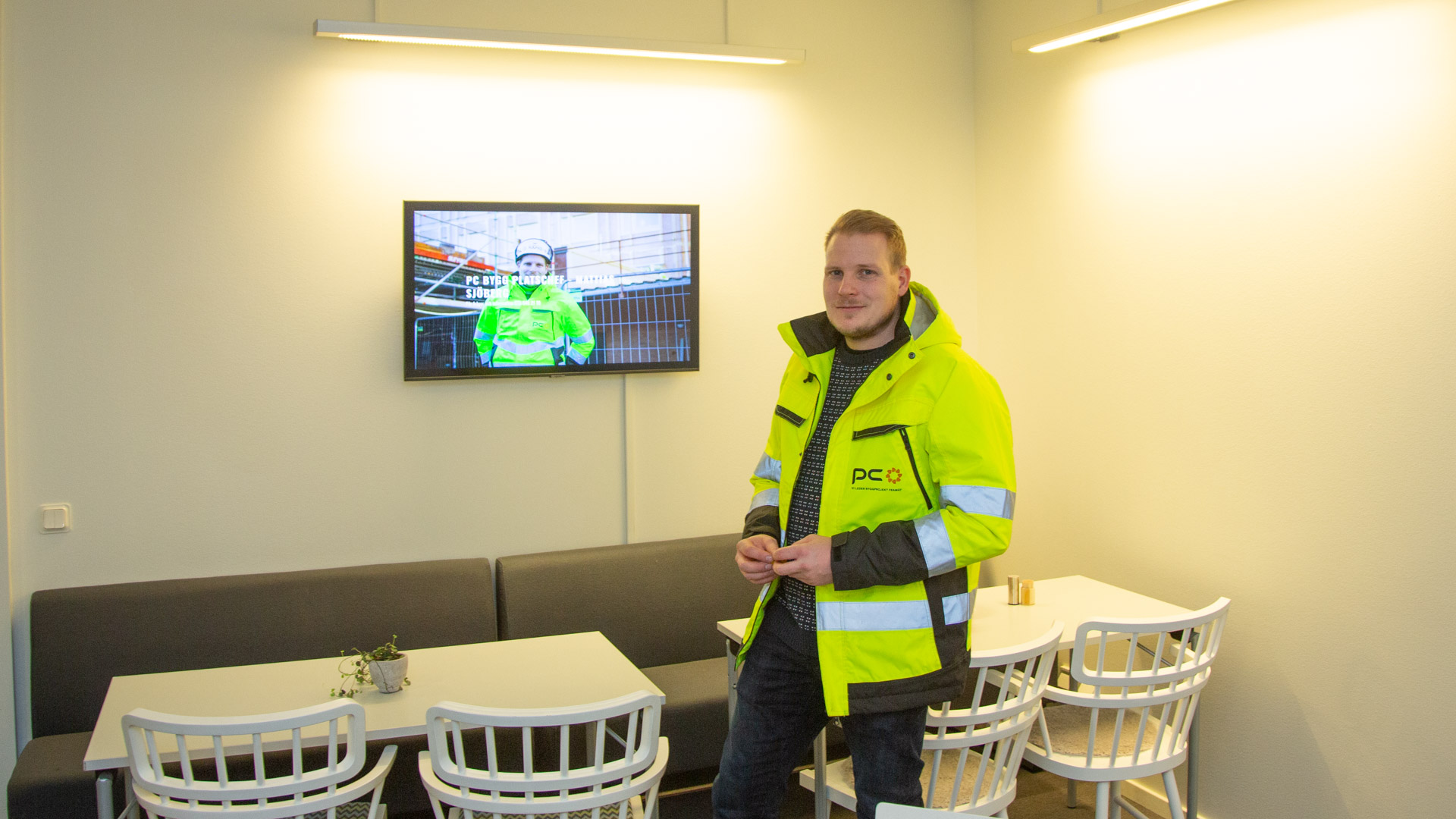 – Vi står i besked att utveckla och förbättra delar av byggnaden, som skall bli nytt och modernt kontor åt svenska kyrkans löneservice. Deras tillfälliga kontor ligger i samma byggnad, för att hålla dem uppdaterade får de information genom en skärm som vi monterat hos dem berättar Mattias. Vi vill föregå problemen och att de som intressenter i projektet kan höra av sig till oss så snart de har några synpunkter utöver de som vi kommit överens om.