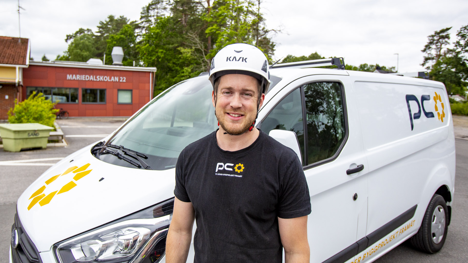 Eric Grönroos kom direkt in i hetluften på PC bygg och fick möjligheten att runda av och stänga etapp två på Mariedalskolan i Vänersborg.